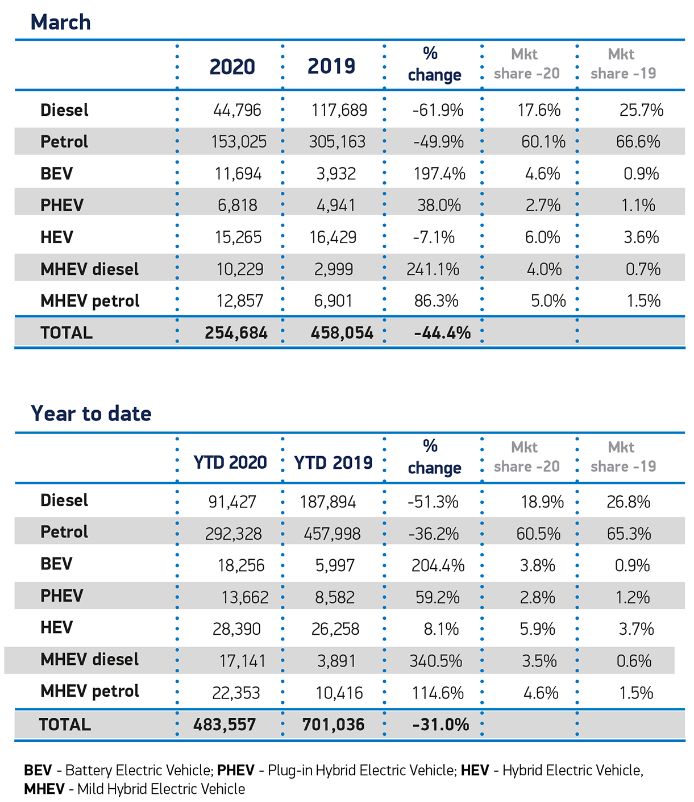 UK new registrations Year To Date March 2020 – Image courtesy of SMMT